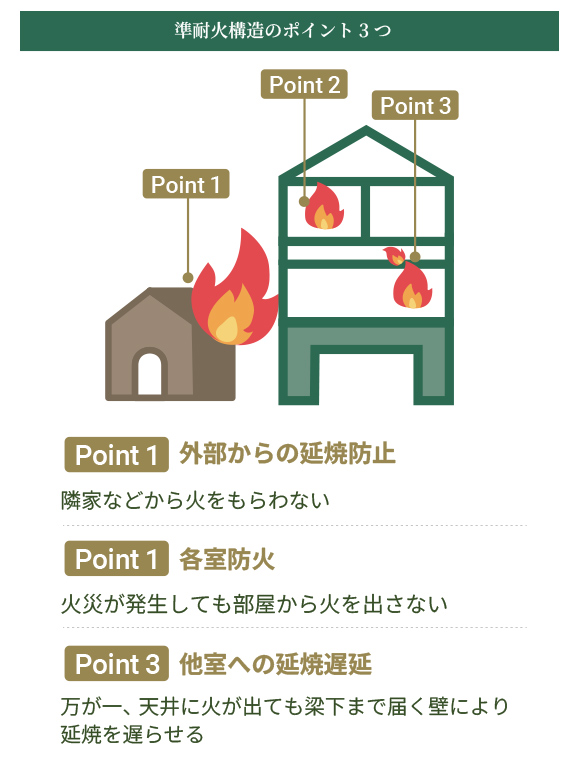 通常の木造構造に比べて火災に強い省令準耐火構造を採用。外壁ボードや天井石膏ボードの厚さ、および外壁断熱材等を強化し、45分準耐火とすることにより延焼を抑えます。ご家族を守る高い耐火性能に加えて、火災保険料の割引も適用されるメリットがあります。