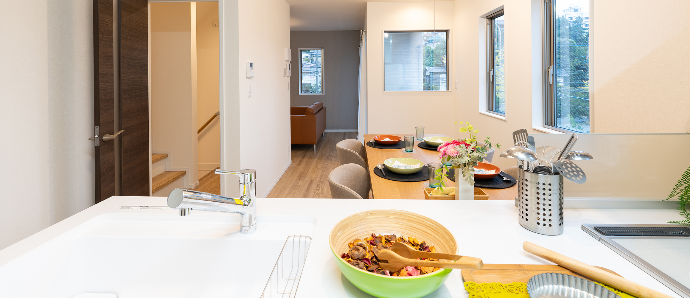 家族の声と料理の香りが自然に溶け合う、洗練された日常を演出するフロアです。